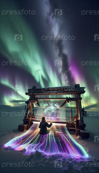 Женщина, плетящая гобелен северного сияния, Ай создала изображение