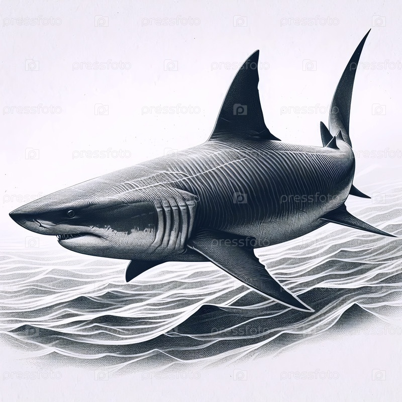 Утонченные чернила акулы рисуют художественную печать, Ai generated image