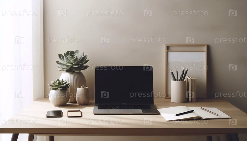 Минималистическое рабочее пространство с нейтральным тоном, Ai generated image