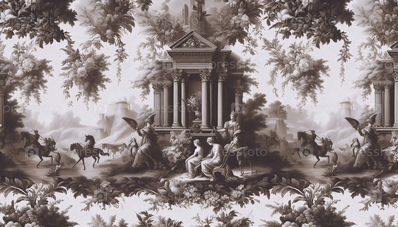 Коричневый цветочный рисунок французский A Toile de Jouy бесшовный дизайн, Ai generated image