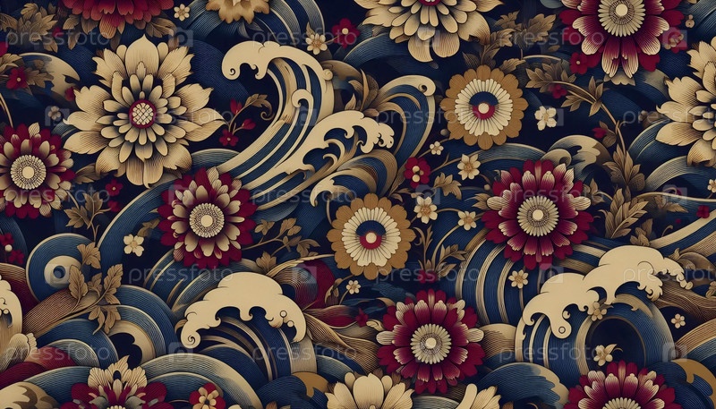 Образцы кимоно Японский шелковый дизайн, Ai generated image A