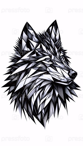 геометрический чернильный рисунок волка