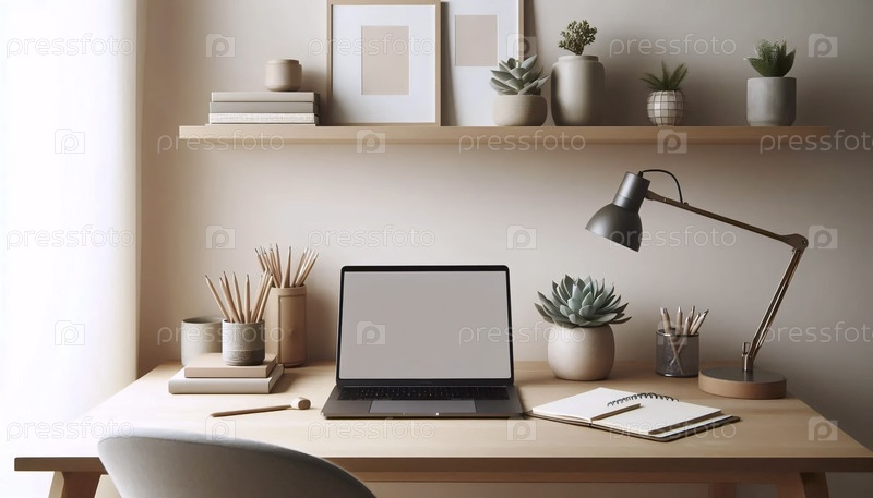 Минималистическое рабочее пространство с нейтральным тоном, Ai generated image