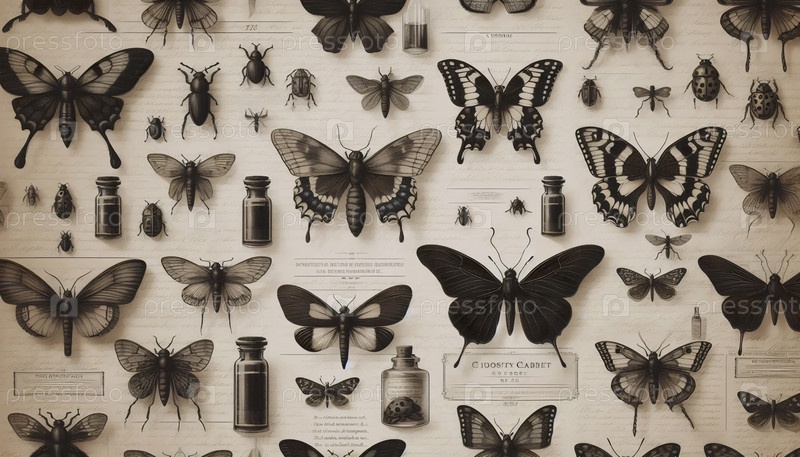 A botanical pattern Butterflies Beetles Vintage Insects, Ai generated image Ботанический шаблон Бабочки жуки Винтажные насекомые, Ай создал изображение