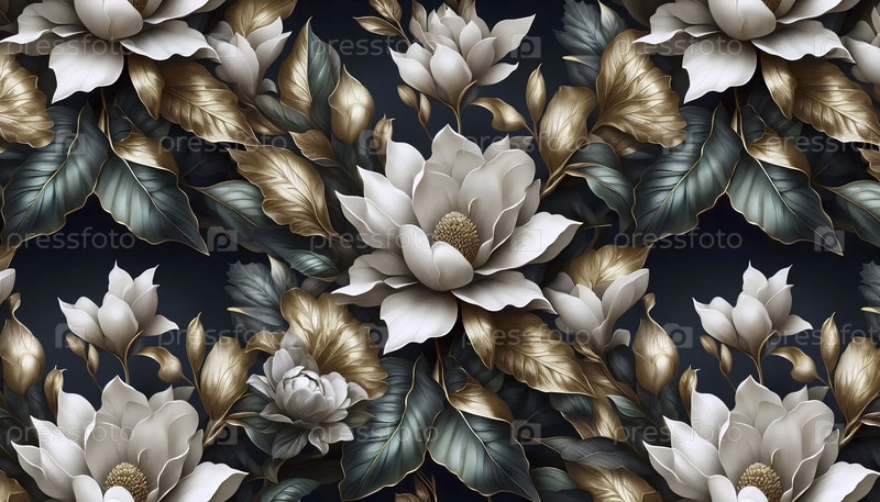 Золотой магнолий шаблон бесшовный дизайн, Ai generated image