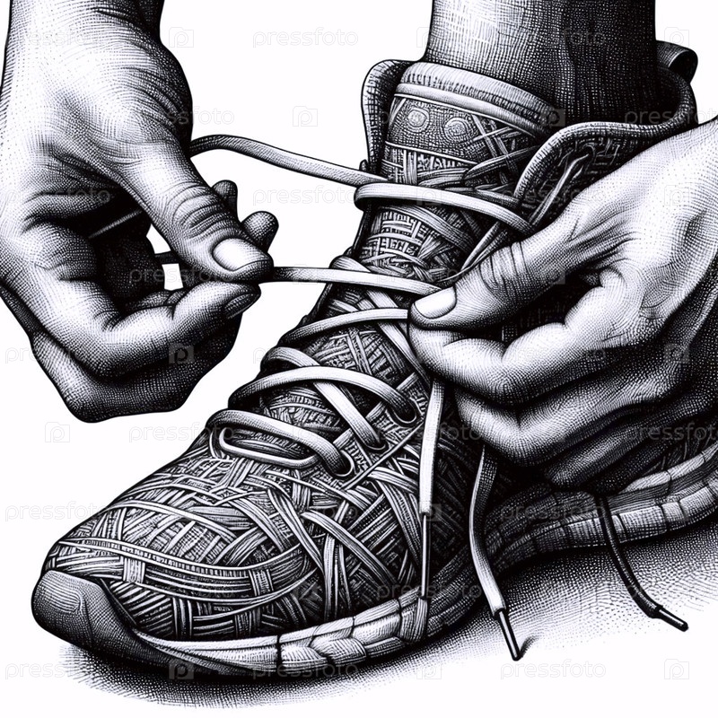 Руки, связывающие обувь Шнурки чернила рисование художественная печать, Ai generated image