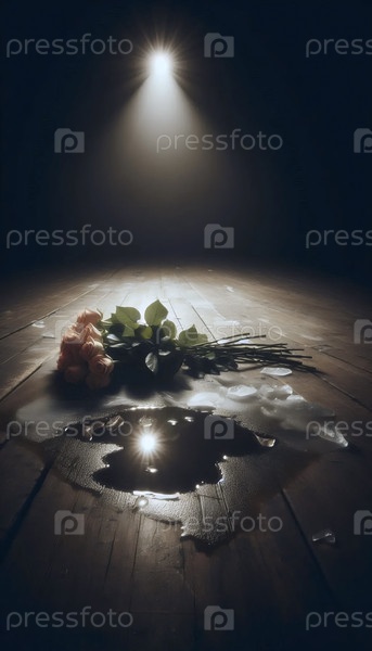Букет у ее ног в луже тающего льда, Ай создала изображение