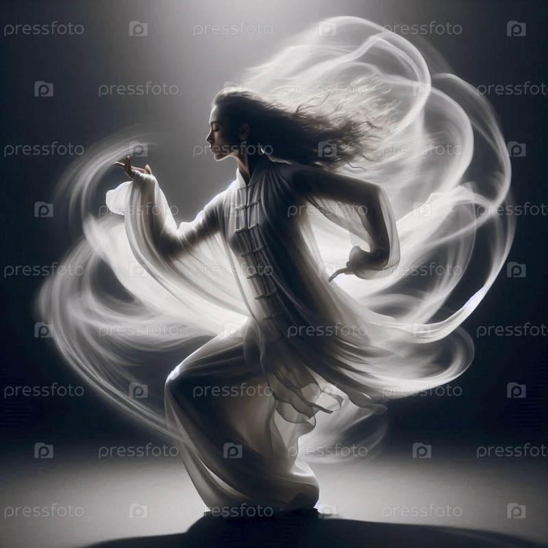 Фотография с длинной экспозицией, захватывающая практикующего тай-чи в движении, Ai generated image