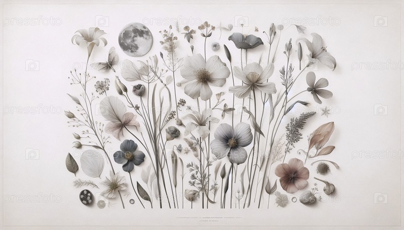 A dried flowers herbarium art print, Ai generated image А сушеные цветы гербария художественная печать, Ай создал изображение