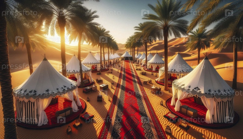 Флаг ОАЭ в пустынном люксовом лагере, Ai generated image