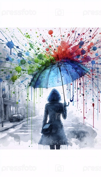 Зонтик под акварельным дождем, Ai generated image
