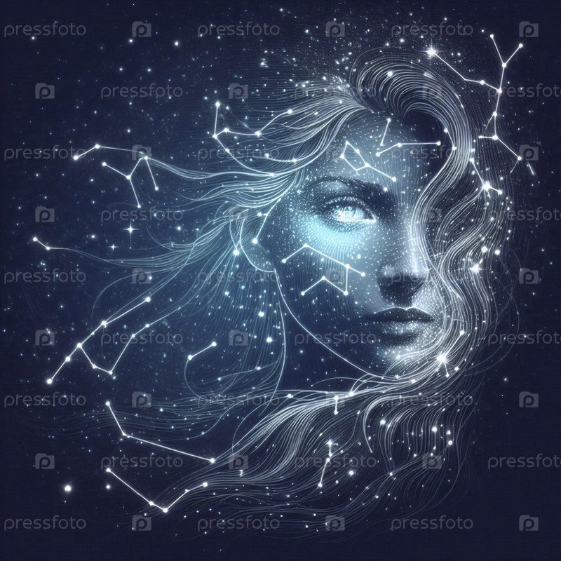 Портрет женщины, сделанный из созвездий, Ai generated image