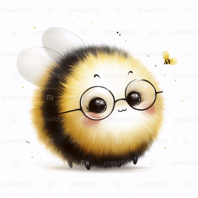 Бамблби с крошечными очками Акварельная художественная печать, Ai generated image