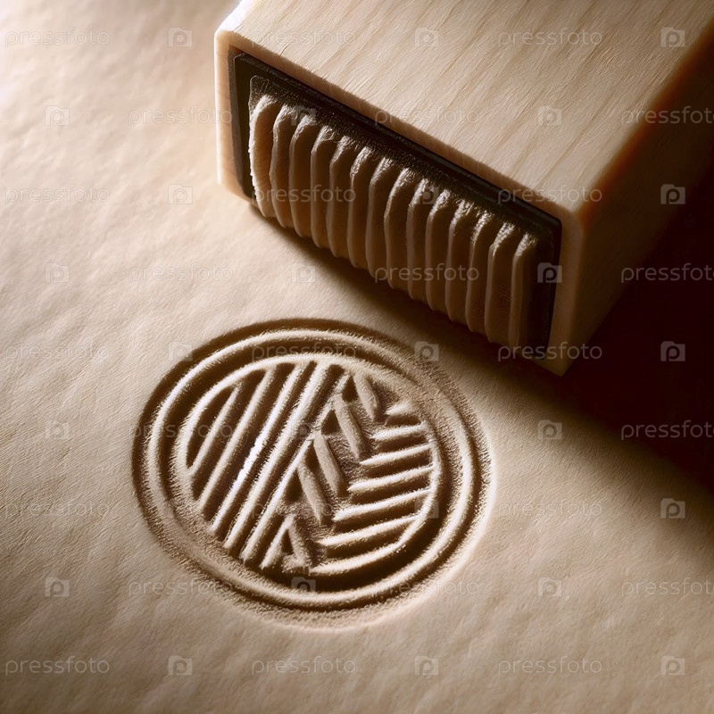 Макет пользовательского отпечатка резинового штампа на коричневой kraft упаковочной бумаге, слегка искаженный, изображение Ai