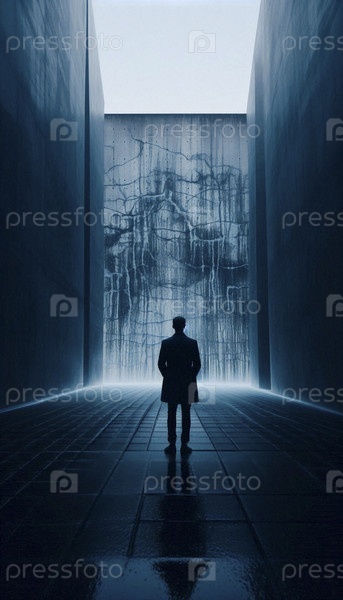 Силуэт в утреннем тумане на абстрактной городской стене, Ай создал изображение