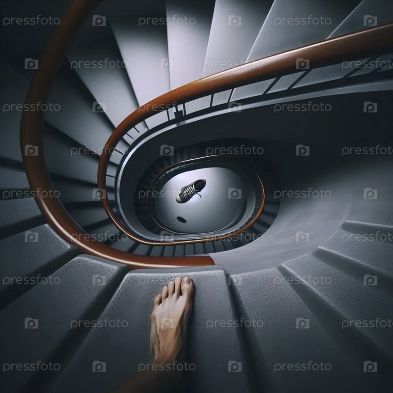 Снимок с вершины лестницы, глядя вниз на путешествие обуви, Ай создал изображение