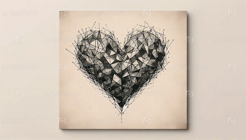 Абстрактный плакат сердца в нейтральных тонах, Ai generated image