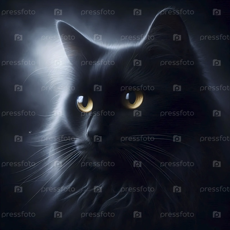 Мистический черный кот с желтыми глазами портрет, Ai generated image
