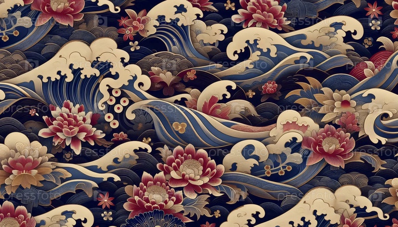 Образцы кимоно Японский шелковый дизайн, Ai generated image A