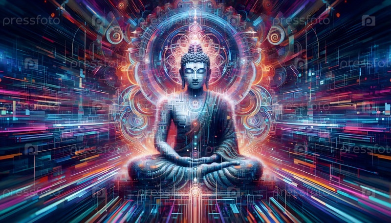 Художественное произведение неонового Будды, Ai generated image