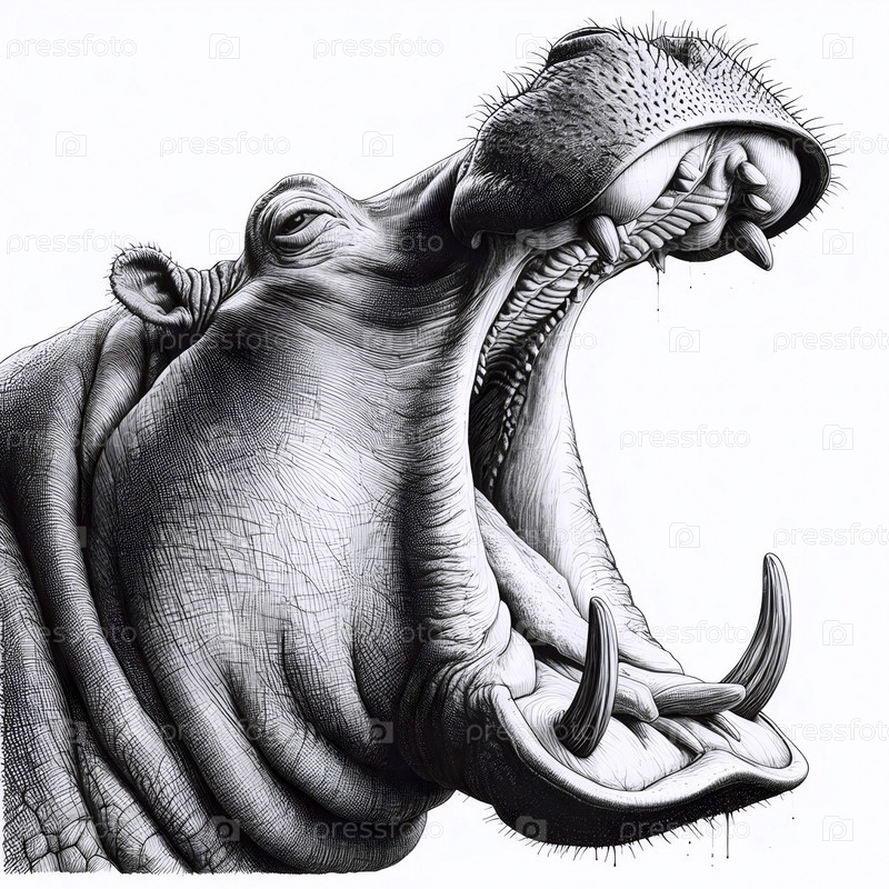 Чихающий бегемот чернил рисуют художественную печать, Ai generated image