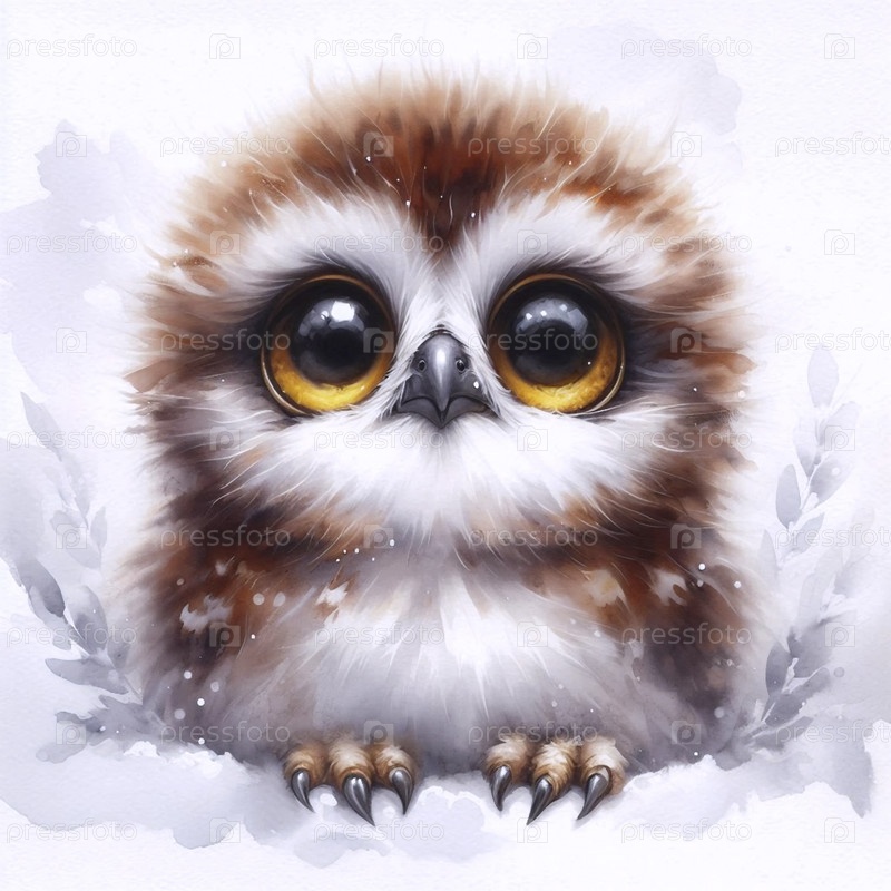 А Pretty Owl акварельный художественный печат, Ai generated image