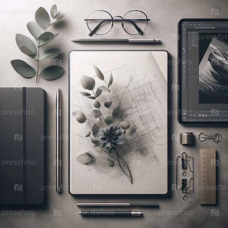 Детальный, амбициозный снимок курируемого рабочего пространства для творческого потока, Ai generated image