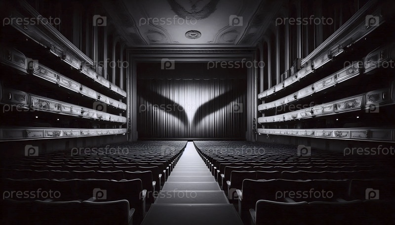 Широкий снимок из задней части пустой аудитории, подчеркивая масштаб и загадку, Ай создал образ