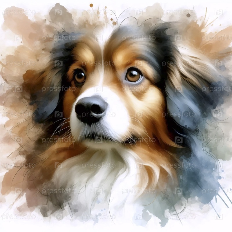 Цифровой акварельный портрет собаки из фото, Ai generated image