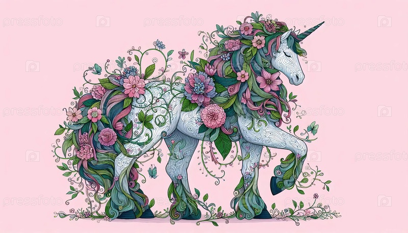 Единорог с цветущей гривой, Ai generated image
