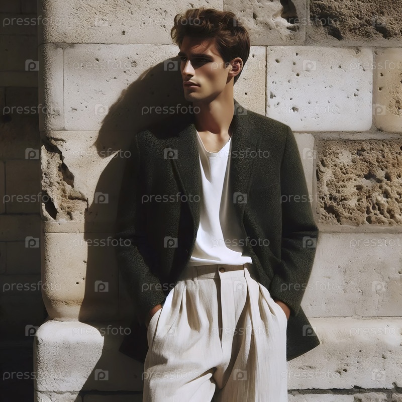 Мужчина в твидовом блейзере и льняных брюках, Ai generated image