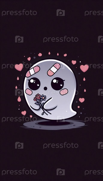 Ями Кавайи иллюстрация грустного пастельного призрака, Ai generated image