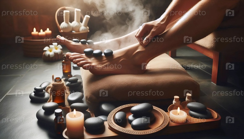 Горячий камень массаж ног, Ai generated image