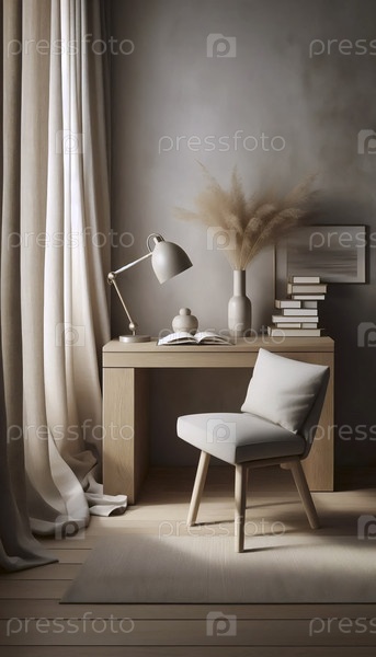 Элегантный нейтральный уголок домашнего офиса, Ai generated image
