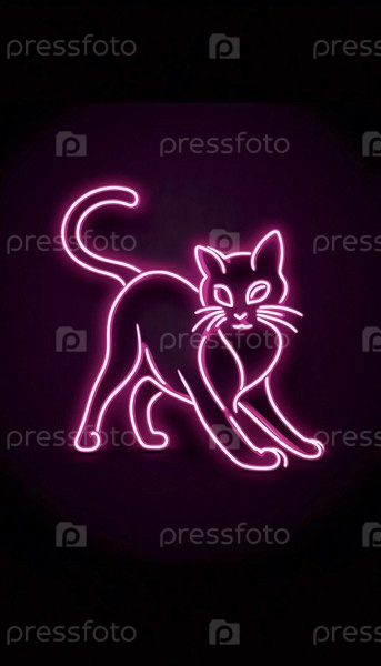 Живая иллюстрация неоновой кошки для телефонного чехла, Ai generated image