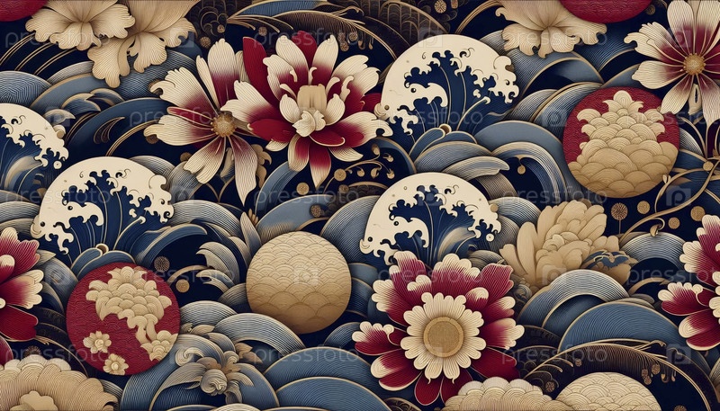 Образцы кимоно Японский шелковый дизайн, Ai generated image A