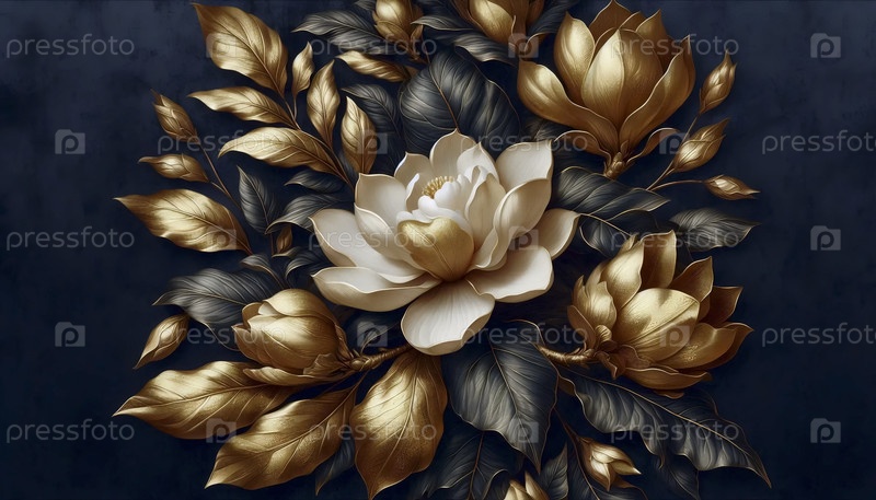 Золотой магнолий шаблон бесшовный дизайн, Ai generated image
