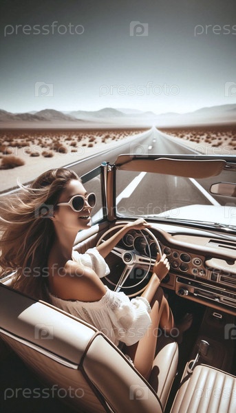 Пустынный драйв в ретро-кабриолет, Ai generated image