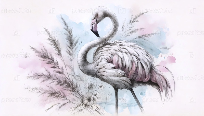 Элегантный чернил фламинго рисует художественную печать, Ai generated image
