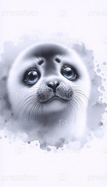 Cute Seal Pup акварельный арт-принт, Ai A generated image