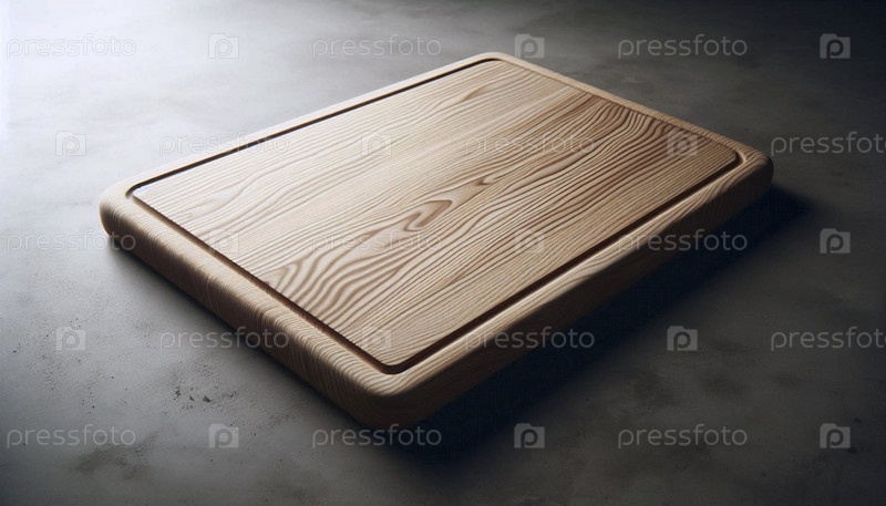 Макет деревянной доски для резки из твердого пепла, изолированный на бетонном полу, Ai generated image