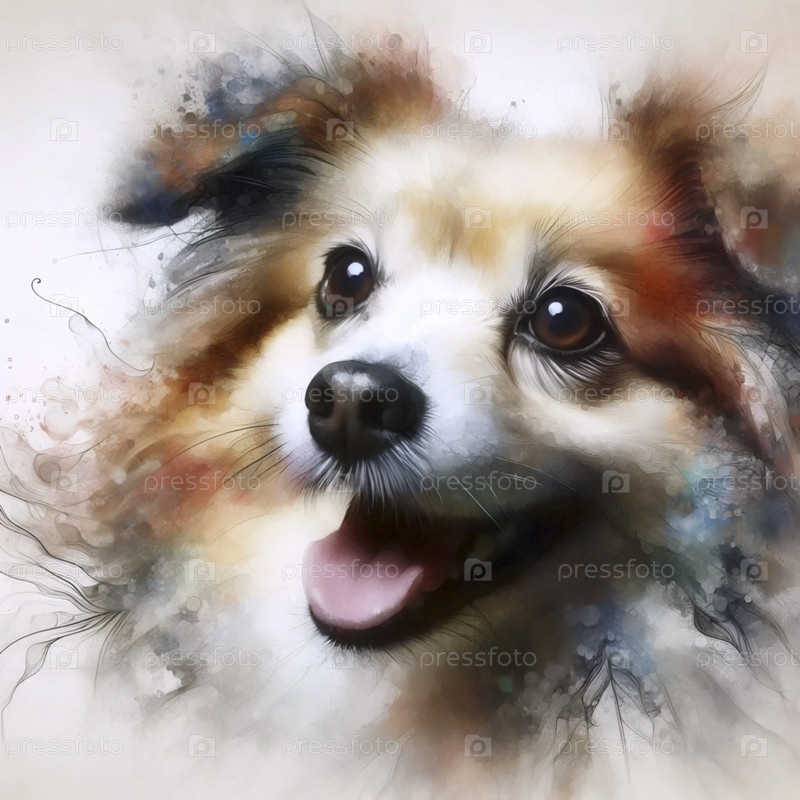 Цифровой акварельный портрет собаки из фото, Ai generated image