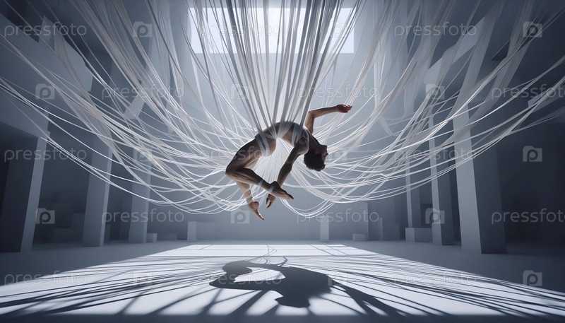 Современный танцор, подвешенный на эластичных лентах Ai generated image