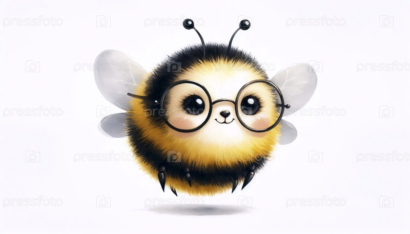 Бамблби с крошечными очками Акварельная художественная печать, Ai generated image