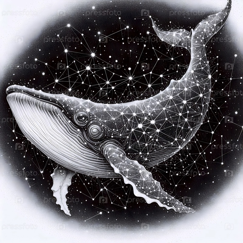 A Cosmic Whale ink drawing art print on black, Ai generated image Космический кит чернил рисует художественную печать на чёрном фоне