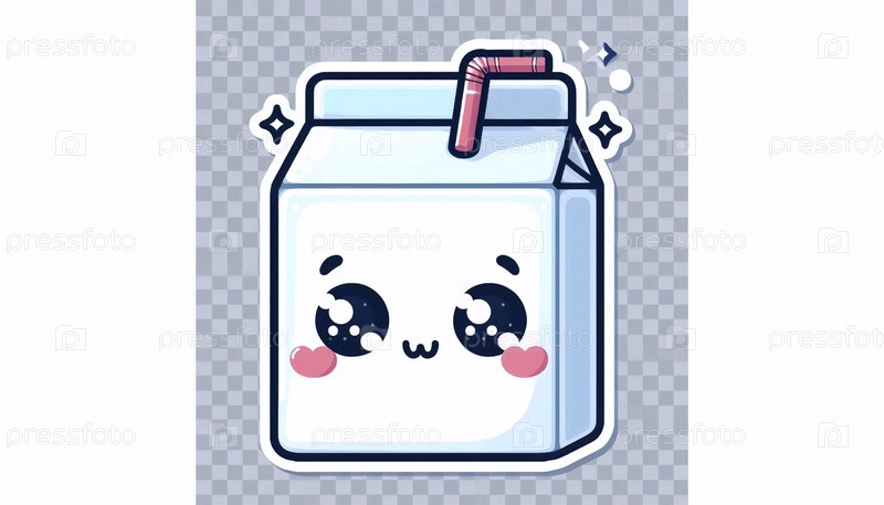 Милый стикер кавайи на живую коробку из молока, Ai generated image