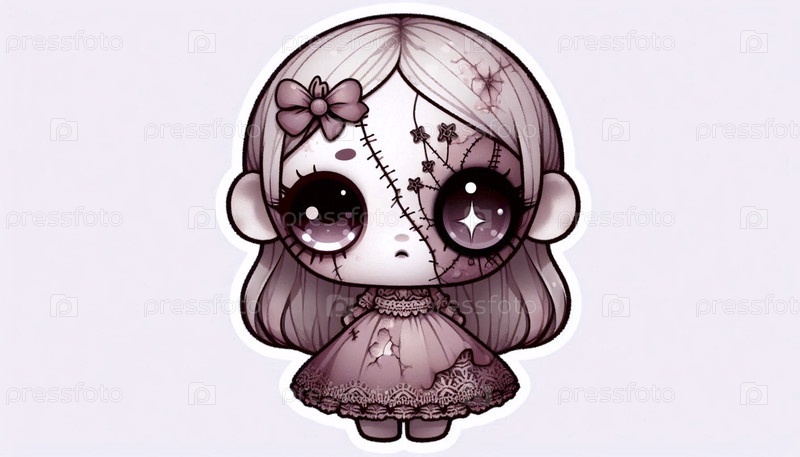 Милый стикер кавайи с разбитой куклой со швамами, Ai generated image
