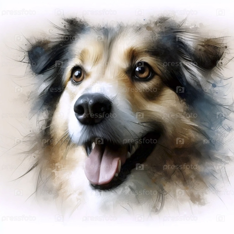 Цифровой акварельный портрет собаки из фото, Ai generated image