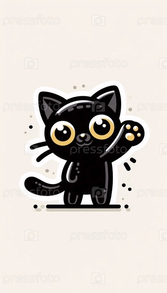 Милый мультфильм черная кошка с желтыми глазами наклейка, Ai generated image