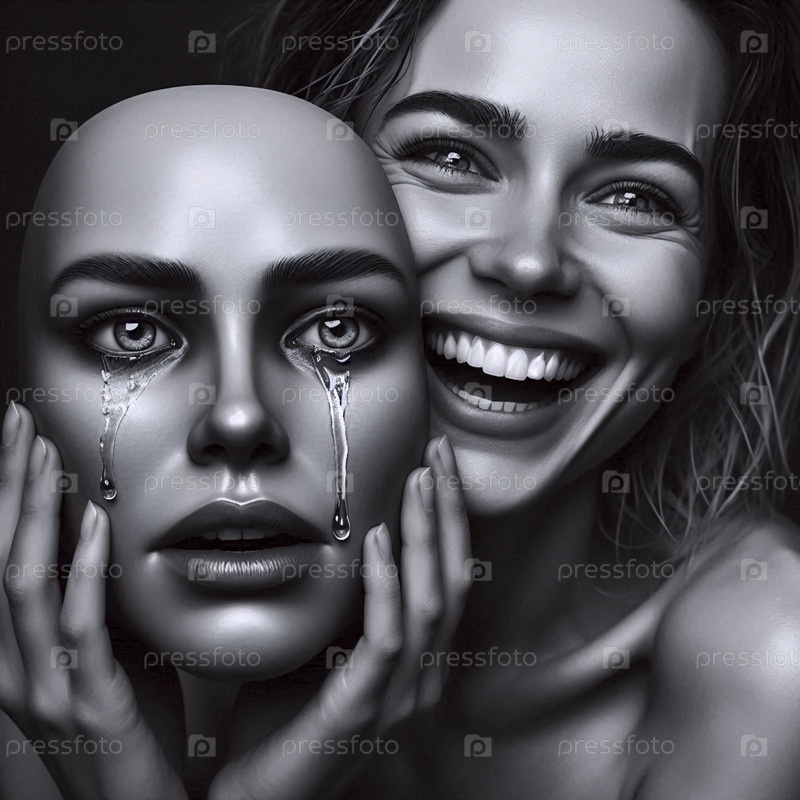 Женщина, держащая плачущую маску, Ai generated image